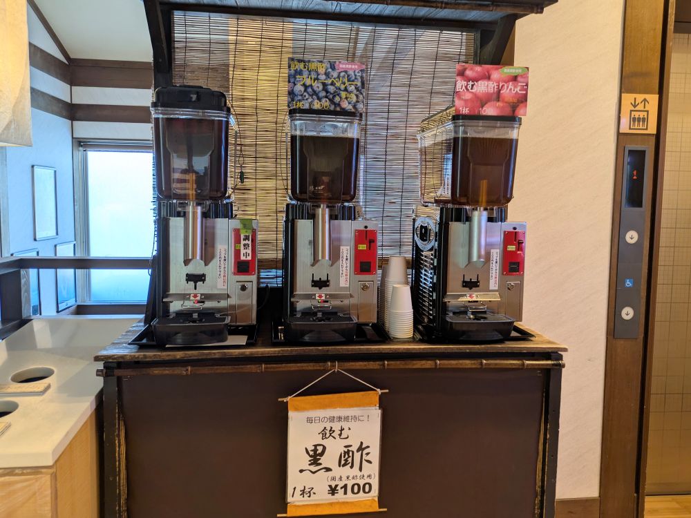湯上りに浴場から出ると、飲む黒酢も販売されているのを見つけました。