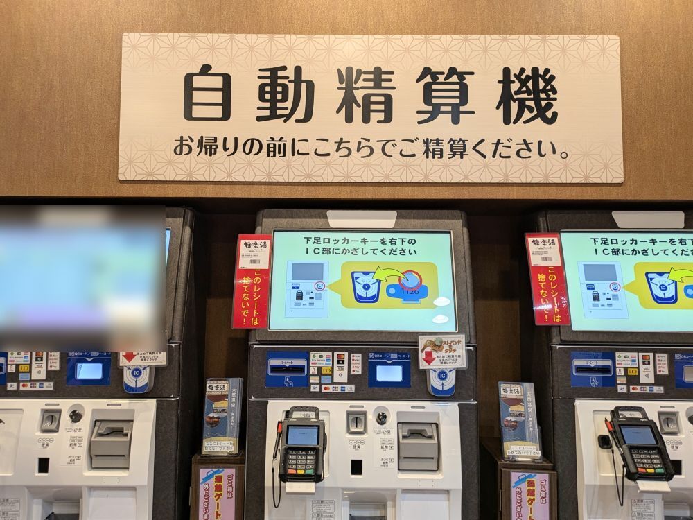 精算はリストバンドをかざし、自動精算機でおこないます。