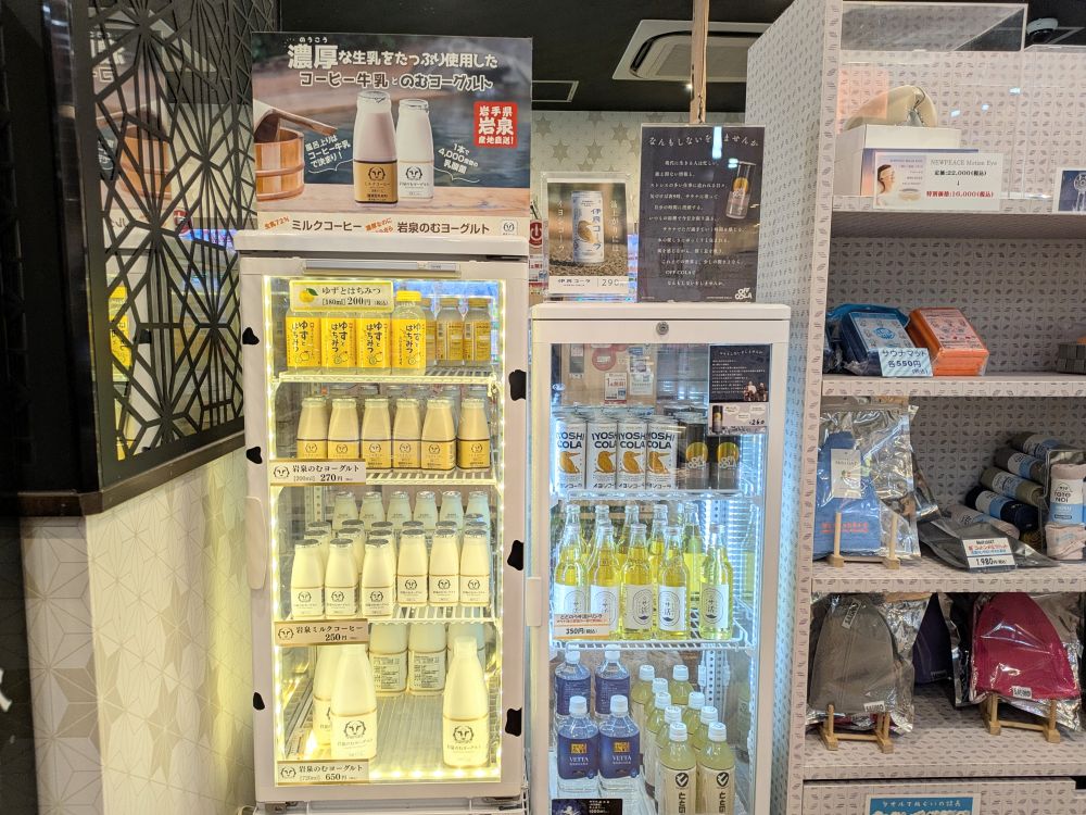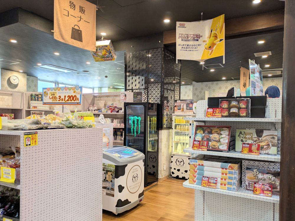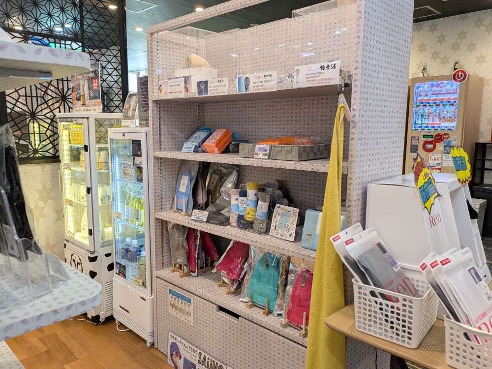 お菓子のお土産や、ドリンク、サウナセットなどが売られていました。