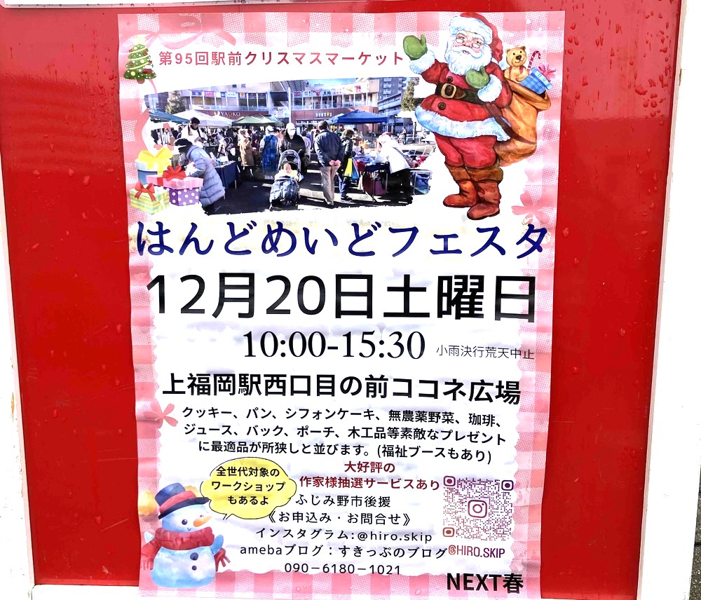 12月20日土曜日、上福岡駅西口前のココネ広場で「はんどめいどフェスタ上福岡」が開催されました。