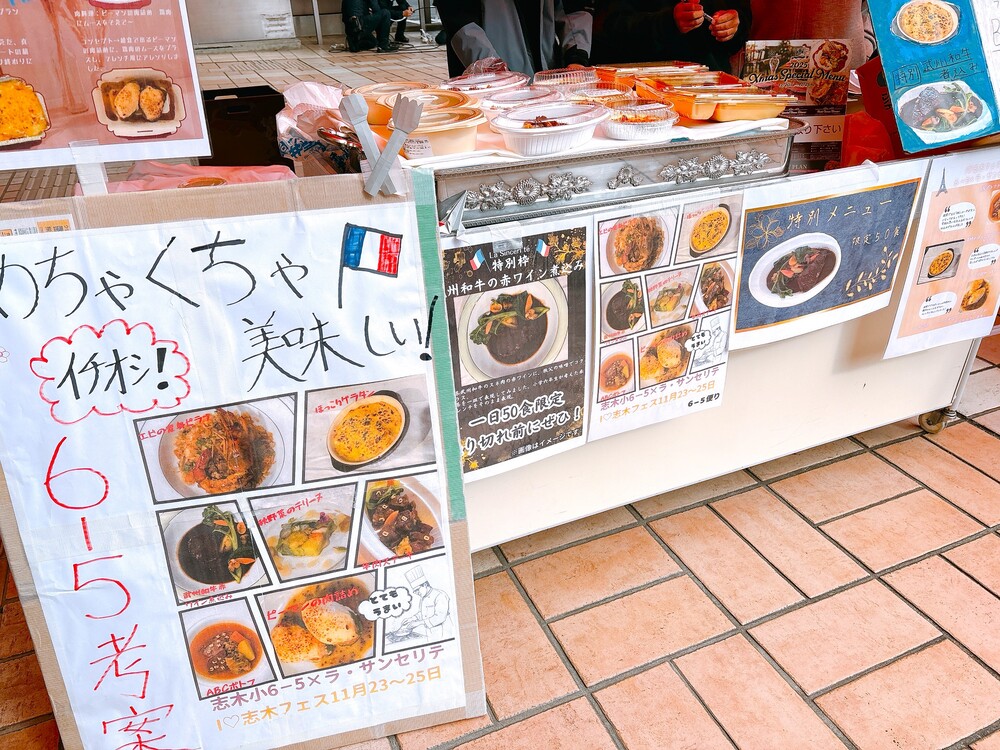 6年5組×「ラ・サンセリテ」は武州和牛の赤ワイン煮込みをはじめ、ポトフや秋野菜のテリーヌ、ピラフなどを販売。