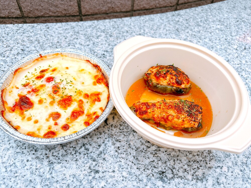 私はピーマンの肉詰め鶏のムースと真鱈のほっこりグラタンを購入させていただきました。