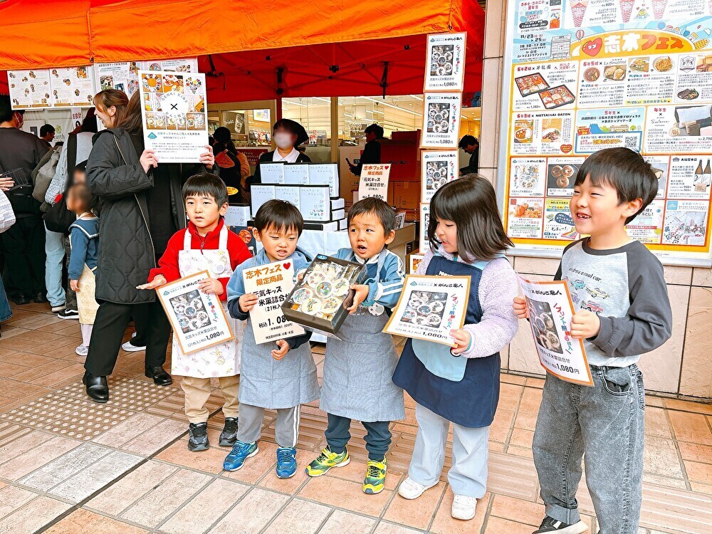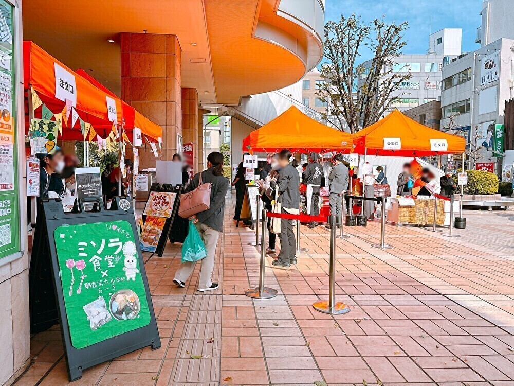1Fの志木駅東口駅前広場では、小学6年生が地域のPRを目的として地元の飲食店や「マルイファミリー志木」のテナントとタッグを組み、開発した商品を販売。