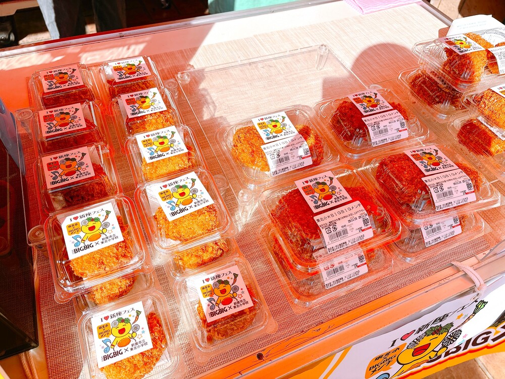 新座市の友好姉妹都市・那須塩原市の黒毛和牛と新座市のにんじんを使ったメンチカツとのこと。