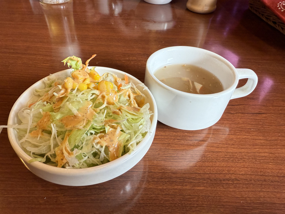 ランチセットを頼むと、カレーに加えてサラダ、スープ、そしてインドカレーといえばの、大きなナンがついてきます(ナンor ライスは選択可)。