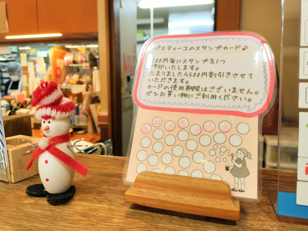 500円ごとに1ポイントがもらえ、全てたまると500円分の割引が受けられます。