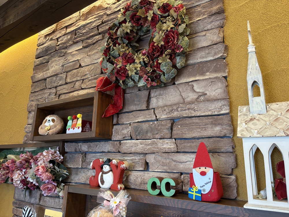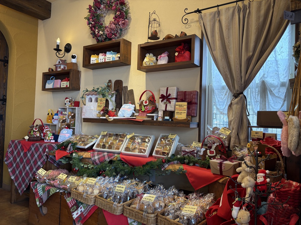 取材した日はクリスマスシーズン。扉を開けた瞬間、クリスマスリースやサンタさんの飾りが目に入り、「わぁ、クリスマスだ!」と心が弾みます。お店の外にもきらきらとした装飾があしらわれ、季節の楽しさに包まれるような気持ちになりました。
