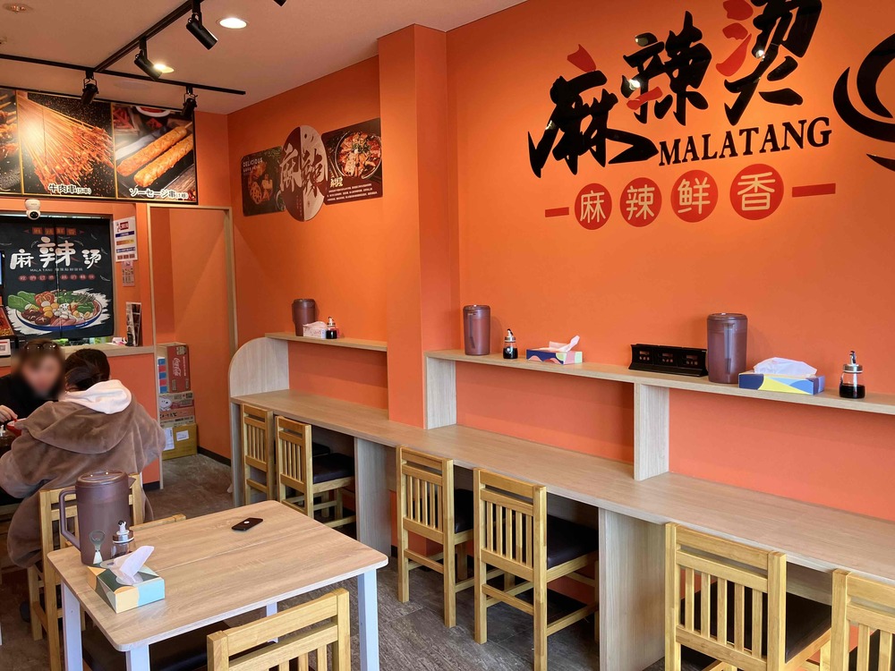 店内は辛色カラーの濃いオレンジ色。壁には大きく「麻辣湯」と書かれており、なんだか食欲をそそられます。
