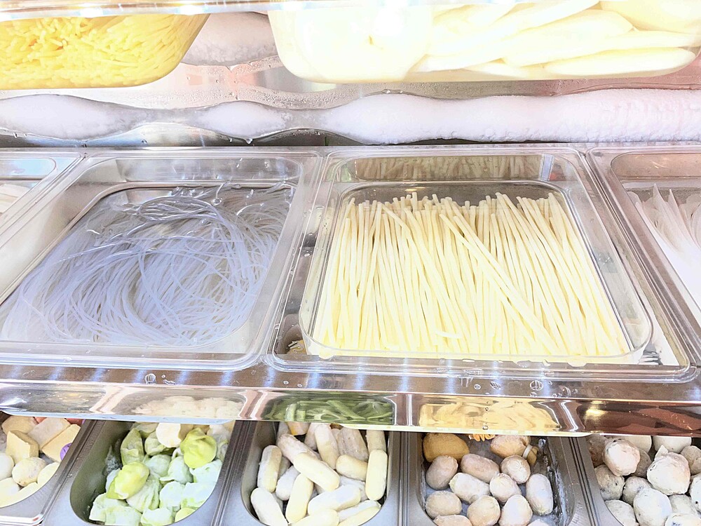 中段にはもやしやしめじ、えのき、キクラゲなど。春雨も細いものや太いものもあり迷っちゃいますね。インスタントラーメンのような乾麵もありましたよ。