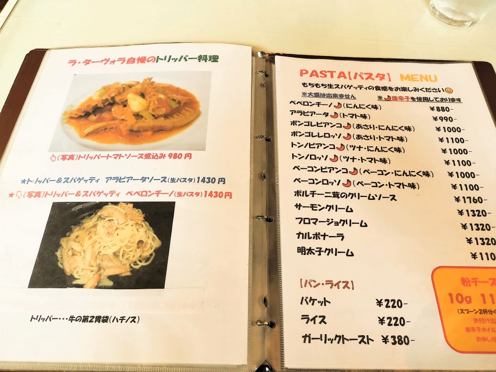 パスタやピザなど定番のイタリアン料理だけでなく、お肉料理やトリッパーという牛の第二胃袋をつかった珍しいお料理も。