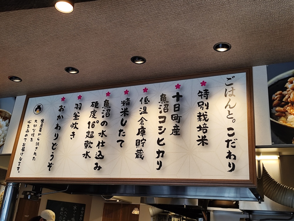店内には、食材やごはんへのこだわりが書かれた看板も掲示されています。定食一つひとつを丁寧に提供しようという姿勢が、料理の完成度にも表れていました。