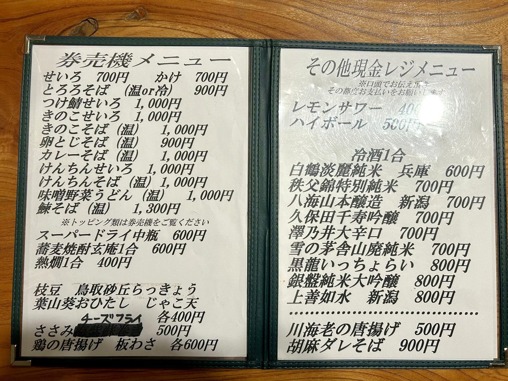 メニューには、単品のお蕎麦・うどんの他、ランチセットやおつまみ、お酒も。中でも、ランチセットが1000円、最もシンプルなせいろ・かけが700円とお手頃!手打ちとは思えない値段です。