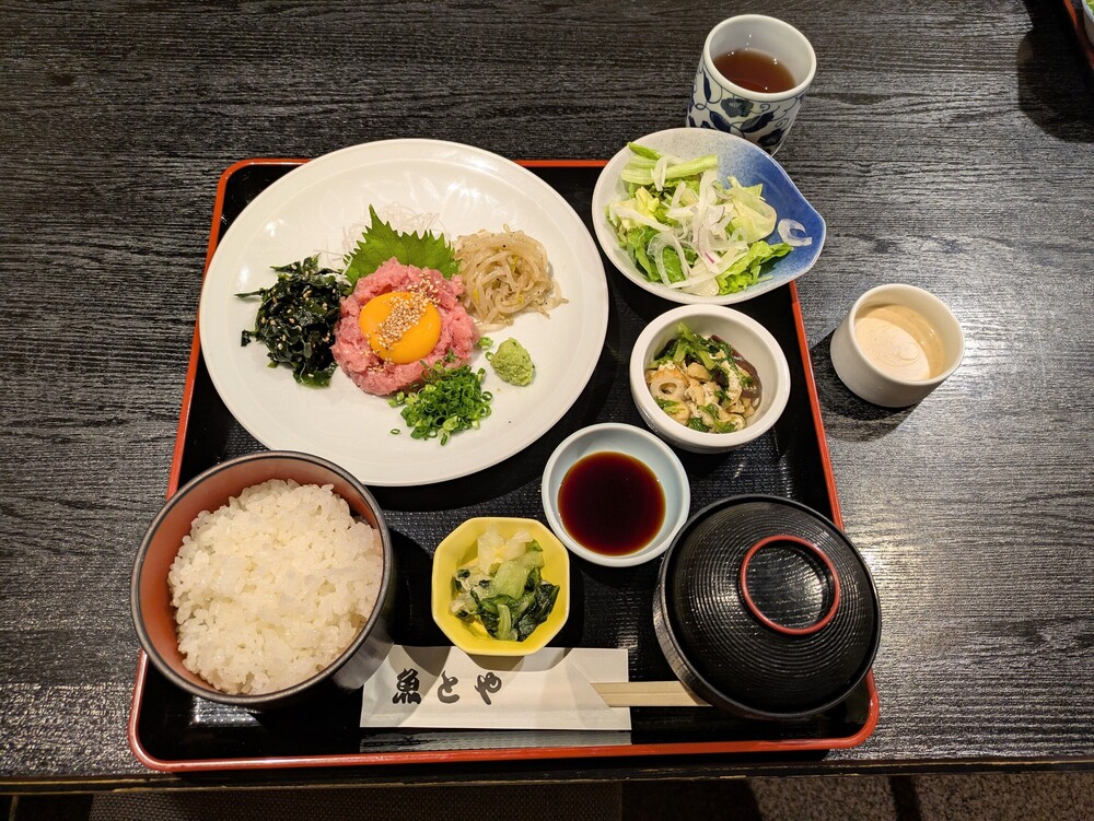 日替わり定食も魅力的ですね!ねぎとろに卵黄がどーんとのっていました。