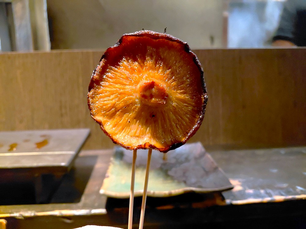 木炭で焼かれたしいたけはとてもおいしいですね。ジュワッと旨みが広がります。