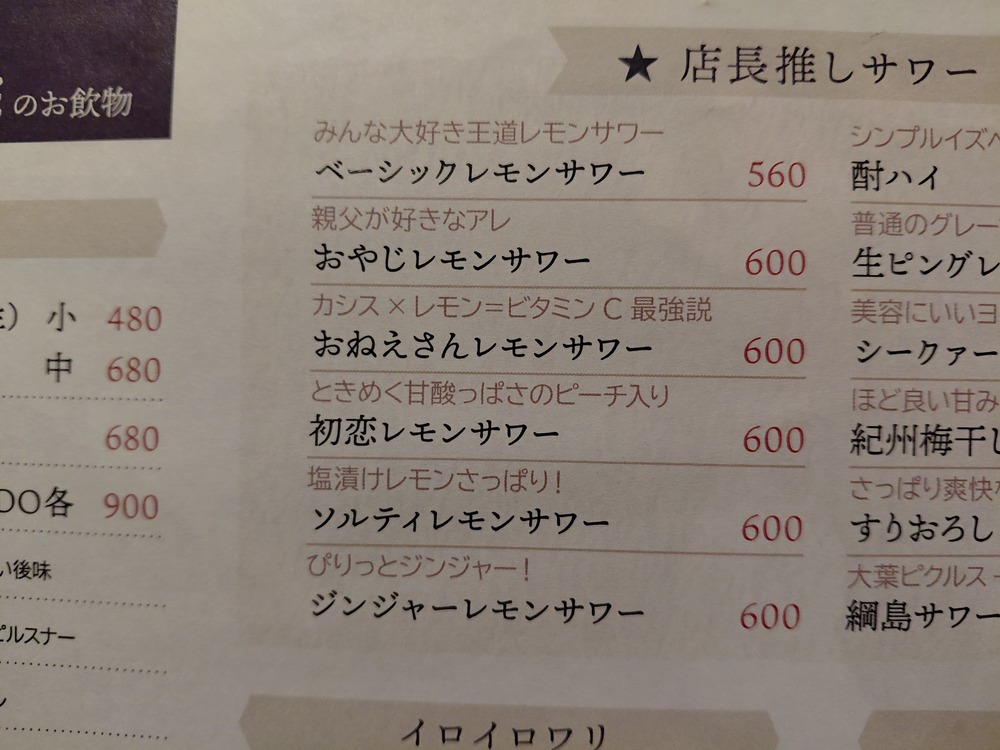 ドリンクメニューをもう一度見ていると、「店長推しサワー」なるメニュー欄を発見。