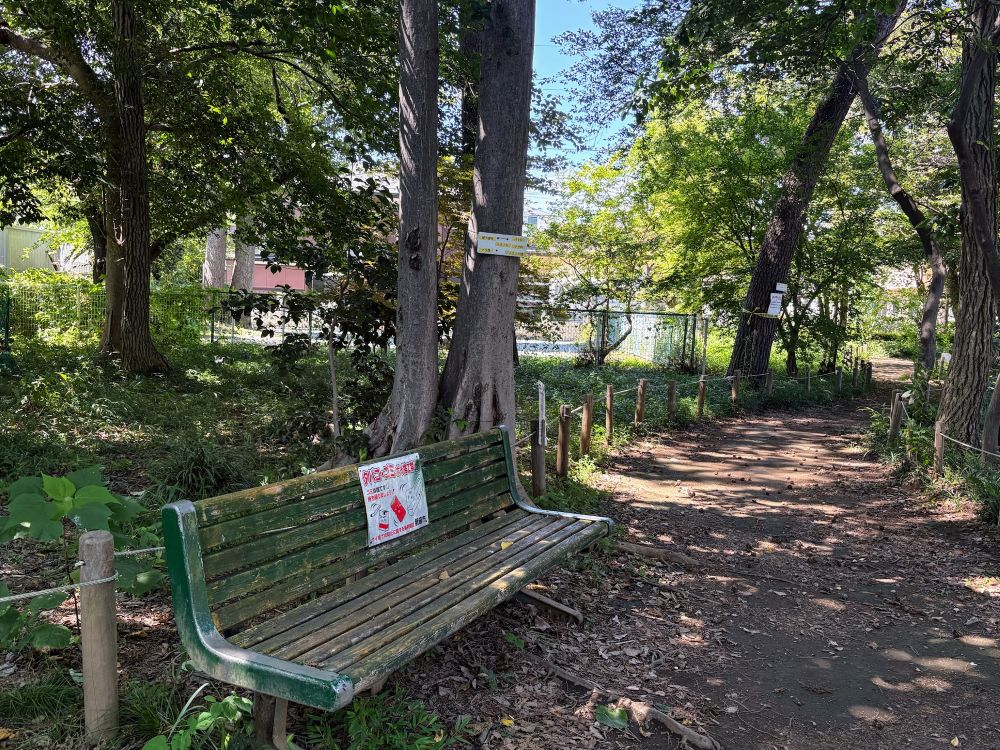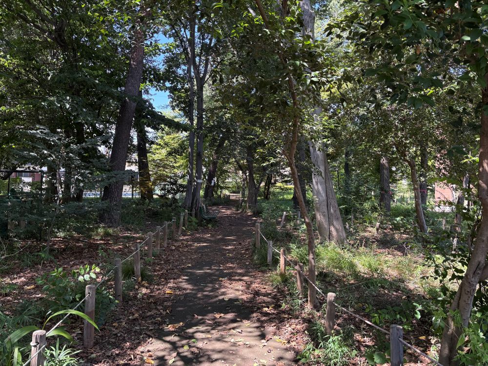 広い緑地ではありませんが、緑豊かで自然の日陰になっているため、一歩入ると真夏でも少しひんやり感じます。雑木林だった頃の面影はそのままに残されているため、樹木のおかげで深呼吸したくなるような気持ち良さ。