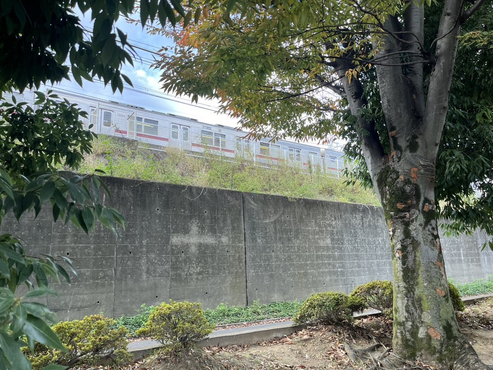公園のすぐ隣に線路があるので、このように公園の中にいながらすぐ近くで電車を見ることができます。