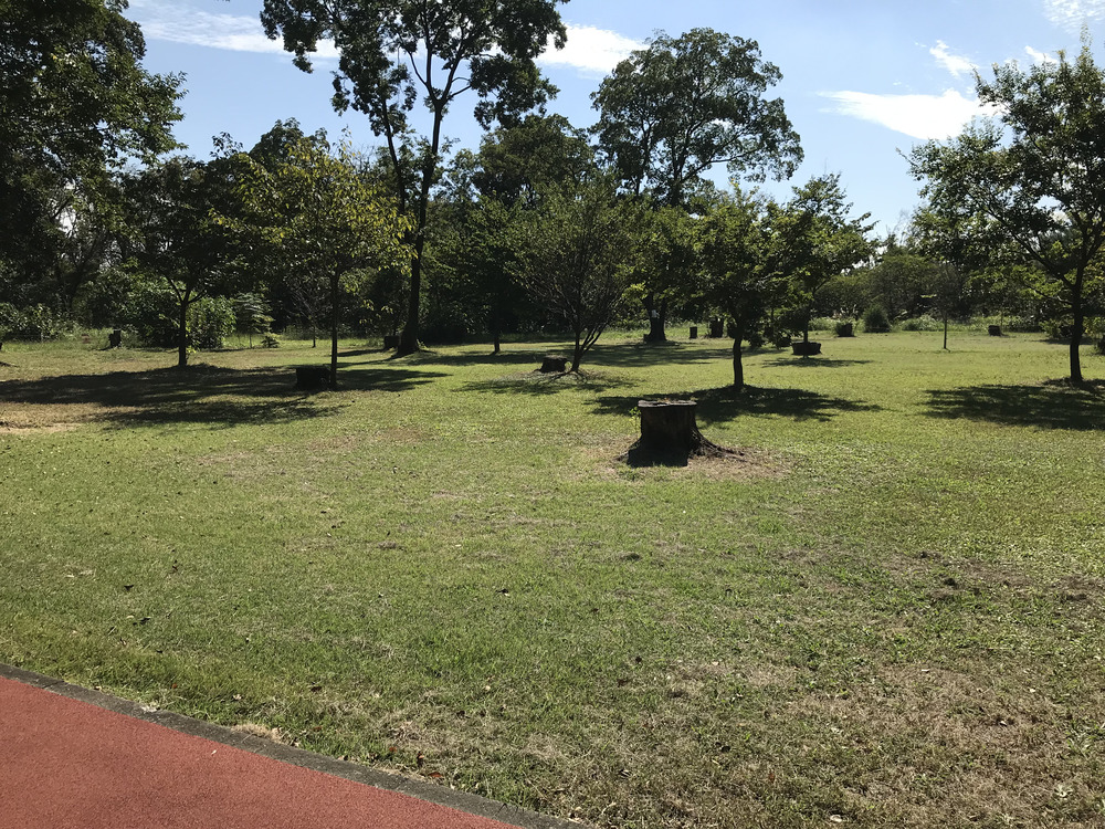 たっぷりの木陰: 広場の周りは緑がいっぱい。日差しが強い日でも、涼しい木陰でひと休みしながら遊ばせられるのが助かります。