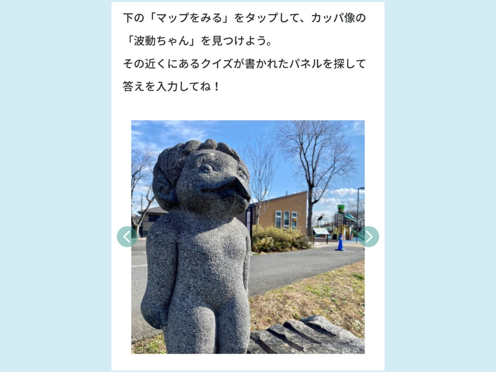どうやらカッパ像の波動ちゃんを探せばいいみたい。