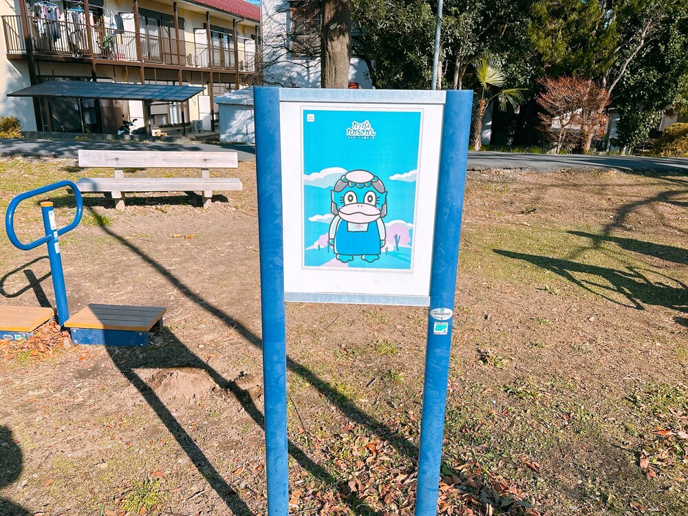 クイズが書いてあるパネルは、公園内にいるカッパの近くにあるようです。