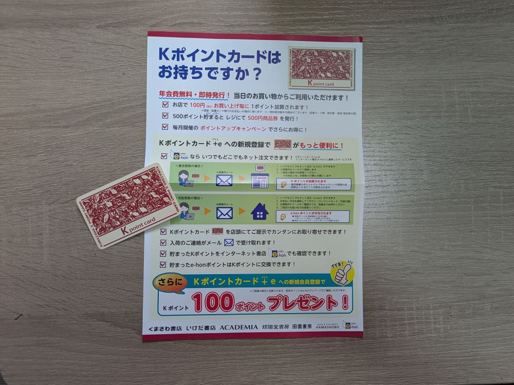 Kポイントカードは、年会費無料・即時発行できてポイントがたまると500円の商品券がもらえます。