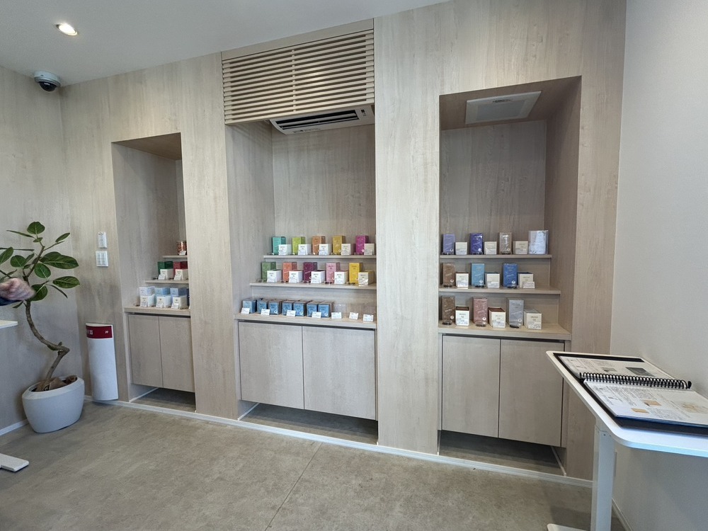 シンプルながらも温かみがあり、ゆっくりと紅茶を選びたくなる空間だと感じました。