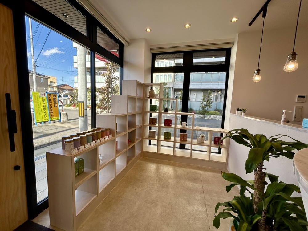 ガラス張りの店内は、白を基調とした明るくおしゃれな空間です。