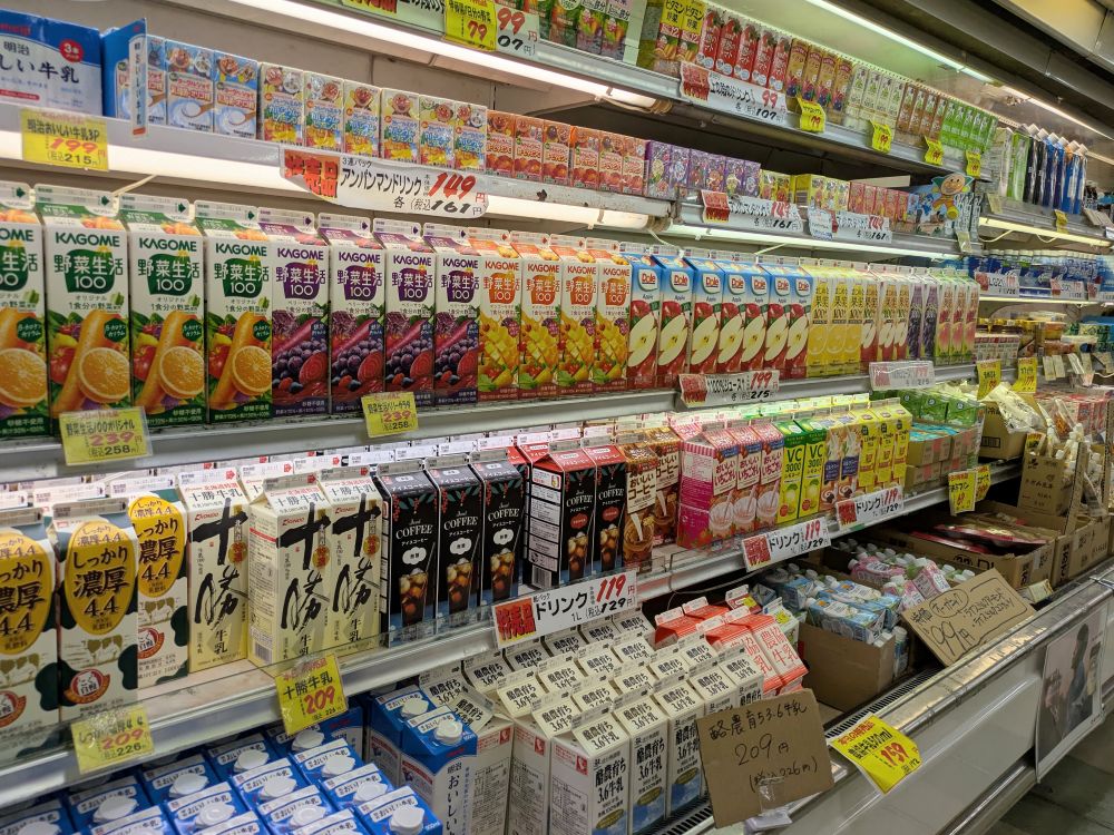 パックの飲料もみっちり並んで、出迎えてくれます。