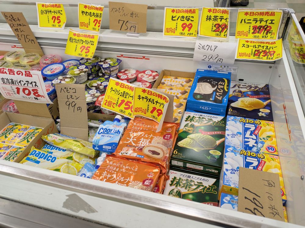 ちなみに、月・金曜はレジ横のショーケースのアイスが、全品30%オフだそうです。