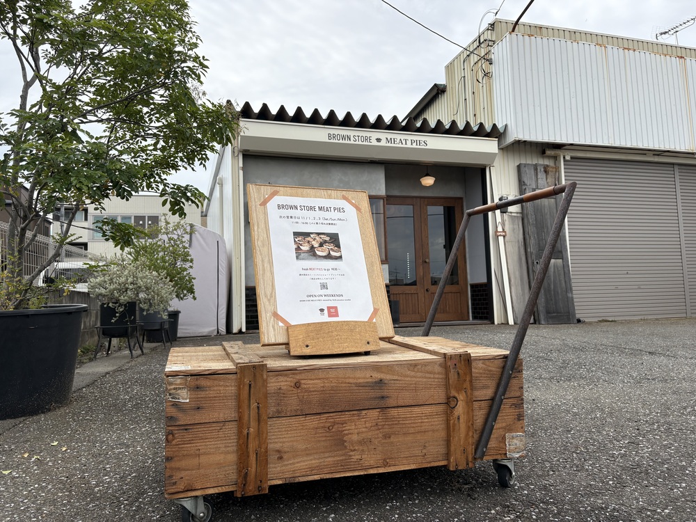 2025年4月にオープンしたBROWN STORE MEAT PIESは、週末限定のテイクアウト専門店。外観も内装もとにかくおしゃれで、インテリア好きな方にもおすすめのお店です。