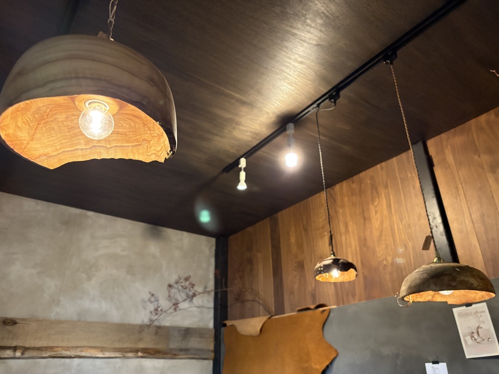 このランプも手作りで、野火止のお庭で伐採されたカエデの木を使用しているそうです。