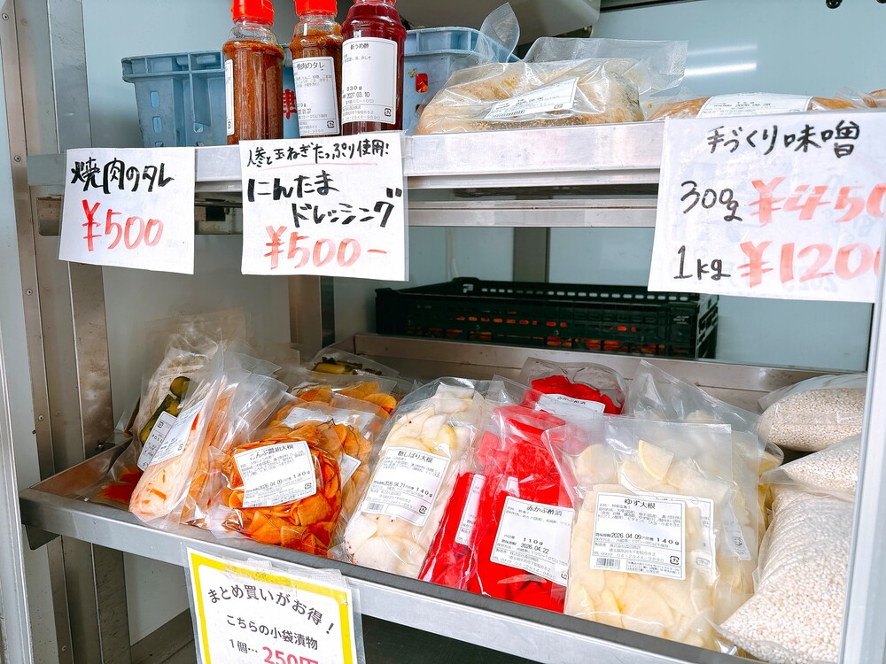 お漬物だけでもたくさんの種類がありますが、それ以外にも、おこわやおはぎ、梅干し、お味噌、ドレッシングや焼肉のタレまで多くの商品が並びます。