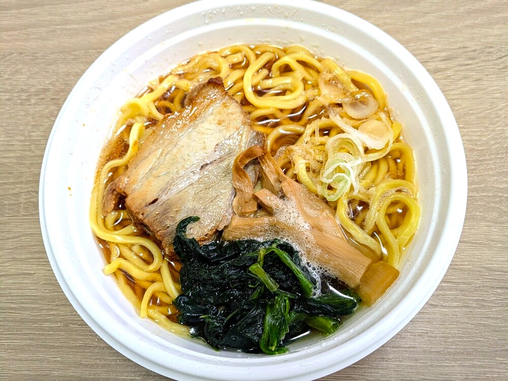 王道の醤油ラーメン。麺はもちもち、スープはあっさり深いコクのある味です。
