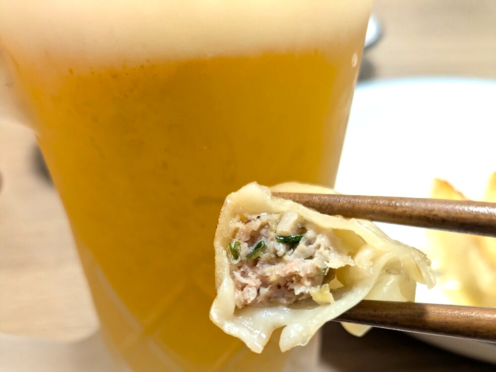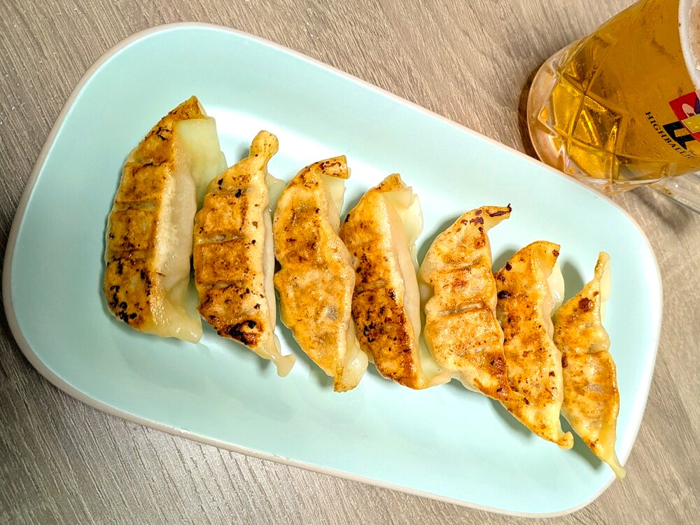 その間に黒胡椒餃子を焼いていきます。ビールと餃子はもう目の前。