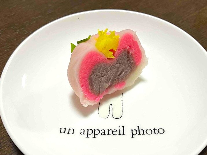 道明寺は粒が大きめに残った半殺し状態で鮮やかなピンクがステキ。